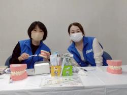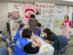 体験コーナーでは、口腔機能向上グッズ工作(ストローで福笑い)でオーラルフレイルについての啓発、ブラッシング指導体験で口腔衛生への意識向上をしていただきました。